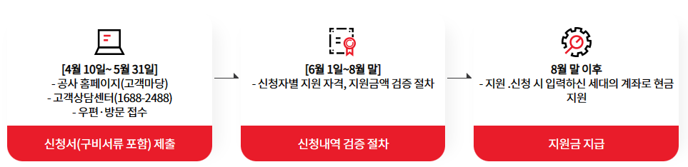 우리 공사 홈페이지에서 신청서 양식을 출력하고 작성한 후 발송주소로 우편 제출 또는 가까운 지사로 방문을 해서 서류를 직접 제출해서 신청할 수 있습니다.